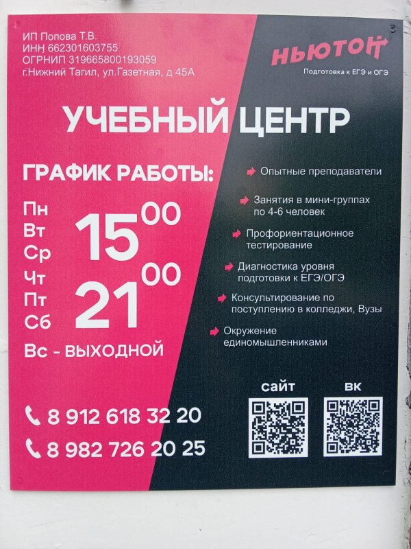 Коллектив понравился своим подходом к ученику, педагоги могут найти с каждым общий язык. У меня была подготовка к ЕГЭ по математике и информатике, учителя выстраивают сами занятия хорошо. Сотрудники "Ньютон" приходили к нам в школу рекламировать свои услуги, так я приняла решение учиться, занятия длились около двух часов.